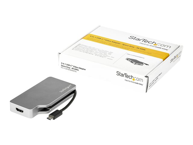 Convertisseur USB Type C vers HDMI 2.0 ou mDP 1.2 (4K60Hz) - VGA ou DVI (1080p) - Aluminium Gris Spatial (CDPVDHDMDP2G) - Adaptateur vidéo - 24 pin USB-C mâle pour HD-15 (VGA), DVI-I, HDMI, Mini DisplayPort femelle - gris sidéral - convertisseur actif, support 1 920 x 1 200 (WUXGA) 60 Hz (DVI et VGA), prise en charge de 4K24Hz (4096 x 2160) (HDMI), prise en charge de 4K60Hz (3840 x 2160) (HDMI), support 4K 60 Hz (4 096 x 2 160) (mDP)