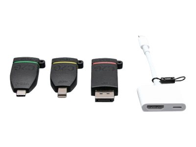 La boucle d'adaptateurs 4K HDMI à support universel rétractable en attente de brevet est le complément parfait des salles de conférence, espaces de travail, amphithéâtres ou salles de classe pour être sûr que tout le monde soit connecté. La configuration standard comprend des adaptateurs permettant de connecter pratiquement tous les appareils à l'écran dans la salle, tout en prenant en charge une résolution vidéo jusqu'à 4K. Selon vos besoins de connectivité, choisissez une connexion HDMI vers DisplayPort, Mini DisplayPort, USB-C ou Lightning.