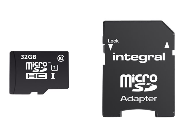 Description du produit Integral UltimaPro - carte mémoire flash - 32 Go - microSDHC UHS-I Type du Produit Carte mémoire flash Format Carte de mémoire microSDHC UHS-I Capacité de stockage 32 Go Indice de vitesse UHS Class 1 / Class10 Adaptateur mémoire fourni Adaptateur microSDHC - SD Garantie du fabricant Garantie de 5 ans -