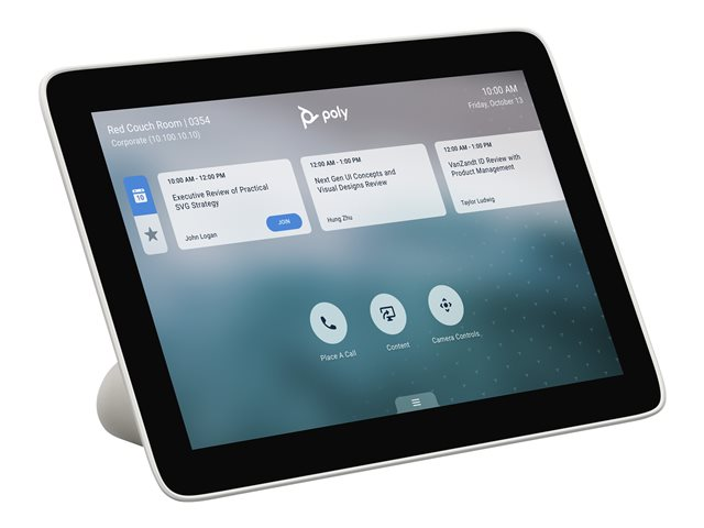 Lancez et rejoignez une réunion, et partagez du contenu en un instant. Le panneau de commande tactile Poly TC8 permet d'accéder facilement aux solutions de visioconférence Poly. L'écran tactile haute résolution de 8 pouces garantit des options de contrôle claires et accessibles.