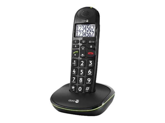 Le téléphone sans fil DECT Doro PhoneEasy 110 est très facile à lire. De plus, son écran rétro-éclairé hautement contrasté affiche les noms complets et les numéros sans devoir faire défiler l'écran. Les larges touches à retour vocal facilitent la numérotation tandis que le TrueSound de Doro offre un son clair de bonne qualité pour des conversations encore plus agréables. Il offre également un mains-libres au son puissant.