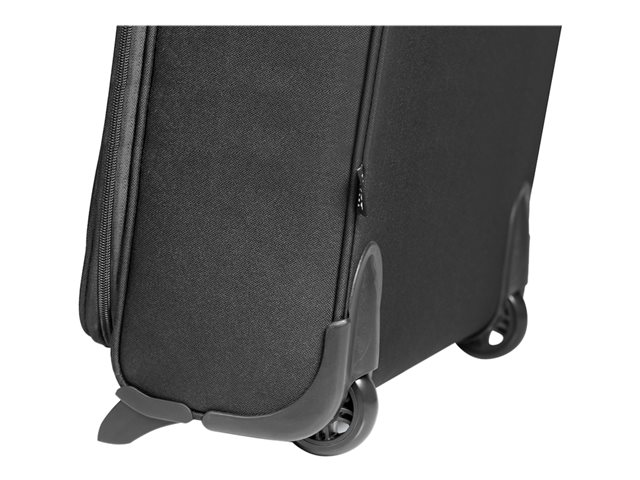 Trolley pour ordinateur portable avec compartiment pour ordinateur portable 15,6" et tablette 10''. Idéal pour les déplacements avec son compartiment pour vêtements et les articles personnels. Poche avant organiser pour stylos et divers accessoires. La structure rigide du trolley protège efficacement son contenu des chocs et chutes. Transport facilité avec son bras extensible en aluminium et poignée à main intégrée. Format IATA adapté aux transports aériens.