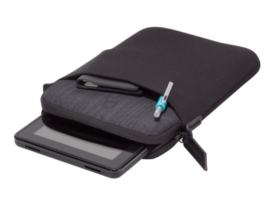 La pochette de la collection est le choix idéal pour quiconque souhaite une protection fine et pratique pour sa tablette sans compromettre le style. La pochette est composée de néoprène résistant et d'une doublure en fausse fourrure qui protège l'ordinateur des éraflures. Elle comporte également une toile en polyester décorative sur le devant et certains endroits sont en cuir véritable. Le Code Sleeve dispose d'une pochette souple pour des accessoires tels qu'un chargeur ou téléphone portable. La pochette est également équipée de deux fermetures éclair, vous permettant de charger un accessoire rangé dans la poche lorsque vous voyagez.