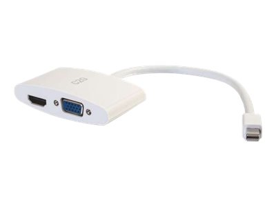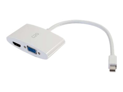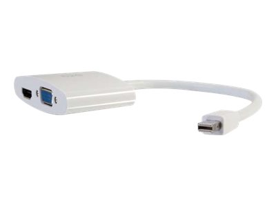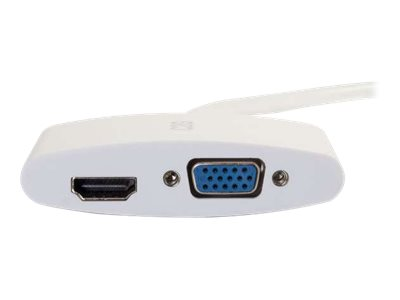 C2G 20cm Mini DisplayPort to HDMI or VGA Adapter Converter 4K UHD - White - Adaptateur vidéo - Mini DisplayPort mâle pour 15 pin D-Sub (DB-15), HDMI femelle - 20.3 cm - blindé - blanc - support 4K 80936