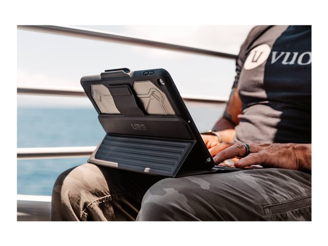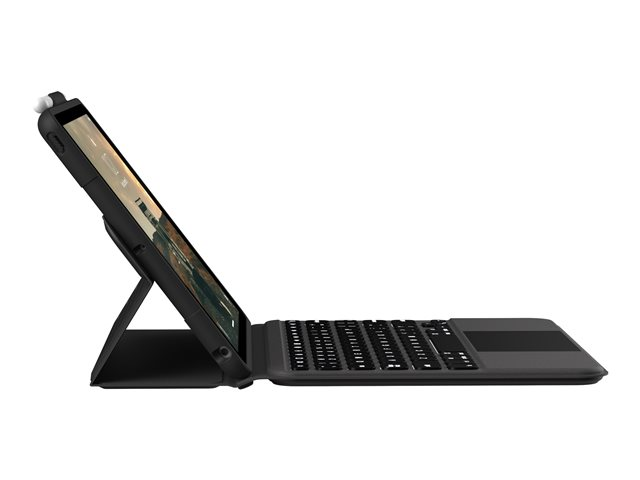 UAG Rugged Bluetooth Keyboard w/Trackpad (French) - Clavier et étui (boîtier de clavier) - avec trackpad - rétro-éclairé - Bluetooth - Français - noir, cendre clavier, noir, cendre étui - Pour la vente au détail - pour Apple 10.2-inch iPad (7ème génération, 8ème génération, 9ème génération) 124003114031