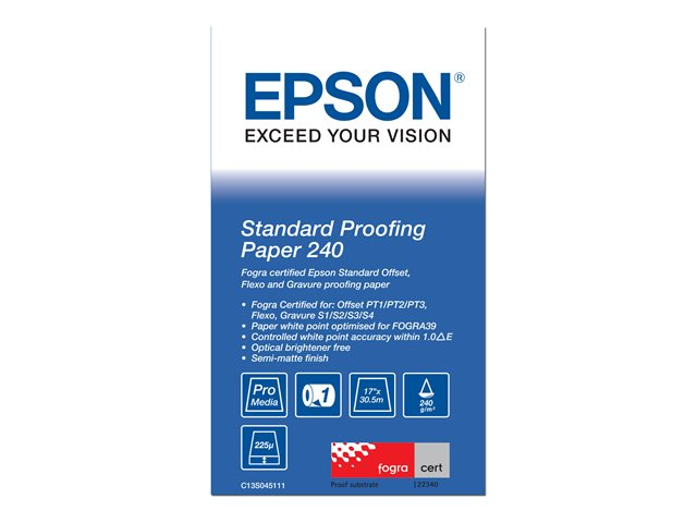 Epson Proofing Paper Standard - Semi-mat - 9 mils - Rouleau (43,2 cm x 30,5 m) - 240 g/m² - 1 rouleau(x) papier épreuve - pour SureColor SC-P10000, P20000, P6000, P7000, P7500, P8000, P9000, P9500, T3200, T5200, T7200