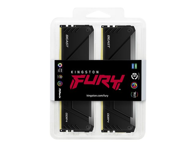 Kingston FURY Beast RGB - DDR4 - kit - 64 Go: 2 x 32 Go - DIMM 288 broches - 3200 MHz / PC4-25600 - CL16 - 1.35 V - mémoire sans tampon - non ECC - noir KF432C16BB2AK2/64