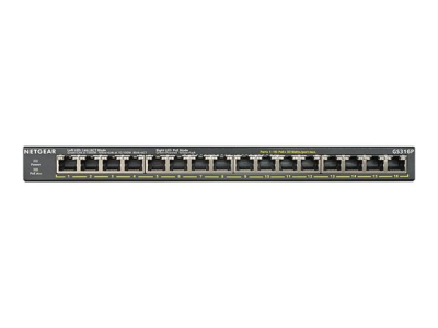 NETGEAR GS316P - Commutateur - non géré - 16 x 10/100/1000 (PoE+) - de bureau, fixation murale - PoE+ (115 W)