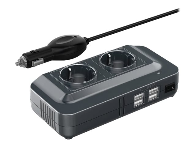 Description du produit DLH - convertisseur continu-alternatif - 200 Watt Type de périphérique Convertisseur continu-alternatif - externe Poids 314 g Localisation France, Europe Tension d'entrée 12 V Tension de sortie CA 220 / CC 5 V Capacité d'alimentation 200 Watt Connecteurs d'entrée 1 x automobile cigarette lighter Connecteurs de sortie 4 x USB de type A 4 broches - 5 V 2.4 A 200 W