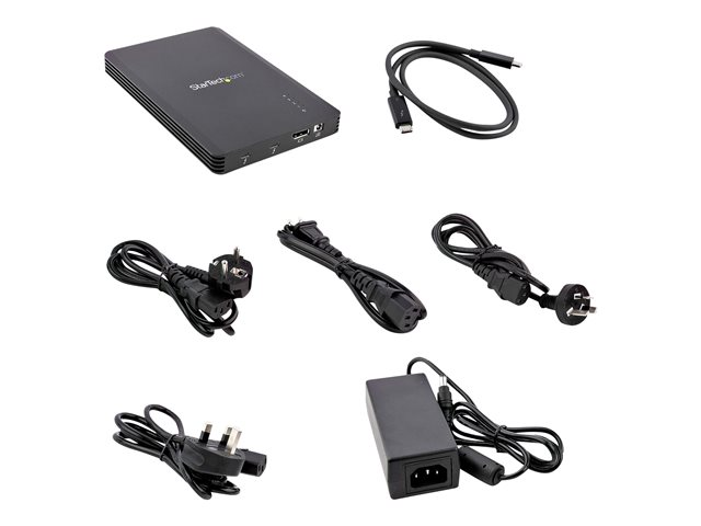 StarTech.com 4 Bay Thunderbolt 3 NVMe Enclosure, For M.2 NVMe Solid State Drives, 1x DisplayPort Video & 2x TB3 Downstream Ports, Up to 40Gbps, 72W Power Supply - 4 Bay M.2 SSD External Hard Drive Enclosure (M2E4BTB3) - Boitier externe - M.2 - M.2 NVMe Card / PCIe (NVMe) - Thunderbolt 3 - noir M2E4BTB3