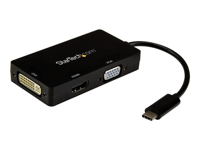 StarTech.com 4K USB C to HDMI, VGA & DVI Multi Port Video Display Adapter for Mac / Windows Laptop & Monitor (CDPVGDVHDBP) - Adaptateur vidéo - 24 pin USB-C mâle pour HD-15 (VGA), DVI-I, HDMI femelle - 15 cm - noir - convertisseur actif, prise en charge de 4K30Hz (3 840 x 2 160) (HDMI), support 1 920 x 1 200 (WUXGA) 60 Hz (DVI et VGA)
