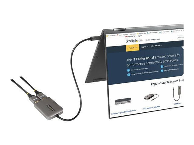 StarTech.com USB-C to Dual HDMI MST HUB, Dual HDMI 4K 60Hz, USB Type C Multi Monitor Adapter for Laptop w/ 1ft (30cm) cable, DP 1.4 Multi-Stream Transport Hub, USB Type C to 2x HDMI Ports - USB-C to HDMI Splitter (MST14CD122HD) - Adaptateur vidéo - 24 pin USB-C mâle pour HDMI femelle - gris MST14CD122HD