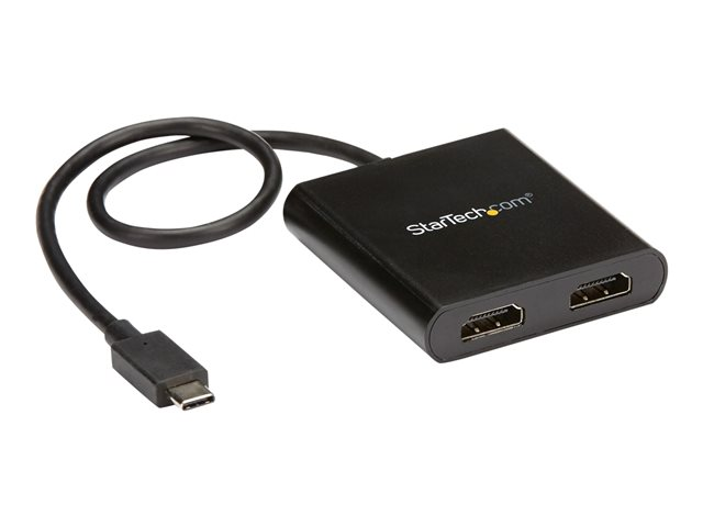 StarTech.com 2-Port Multi Monitor Adapter, USB-C to 2x HDMI Video Splitter, USB Type-C DP Alt Mode to HDMI MST Hub, Dual 4K 30Hz or 1080p 60Hz, Compatible with Thunderbolt 3, Windows Only - Multi Stream Transport (MSTCDP122HD) - Câble adaptateur - 24 pin USB-C mâle pour HDMI femelle - 44 m - noir - support 4K30Hz (3840 x 2160), support 2 560 x 1 600 (WQXGA) 60 Hz - pour P/N: TB33A1C
