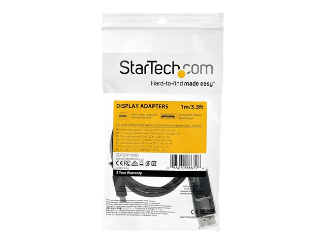 StarTech.com Câble USB C vers DisplayPort 1.2 4K 60Hz, 1m - Câble Adaptateur Vidéo Bidirectionnel DP vers USB-C ou USB-C vers DP Réversible - HBR2/HDR - Câble pour Moniteur USB Type C/TB3 (CDP2DP1MBD) - Câble DisplayPort - 24 pin USB-C (M) pour DisplayPort (F) - USB 3.1 / Thunderbolt 3 / DisplayPort 1.2 - 1 m - support 4K, actif - noir