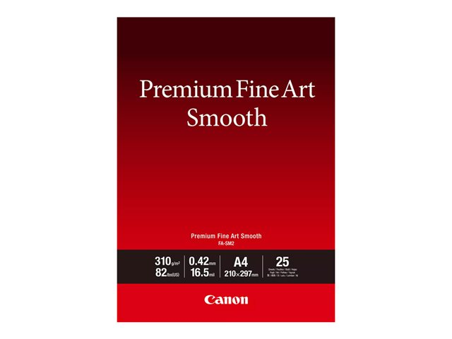 Canon Premium Fine Art FA-SM2 - Lisse - 16,5 millièmes de pouce - A4 (210 x 297 mm) - 310 g/m² - 82 lbs - 25 feuille(s) papier photo - pour imagePROGRAF PRO-1000, PRO-300; PIXMA PRO-10S