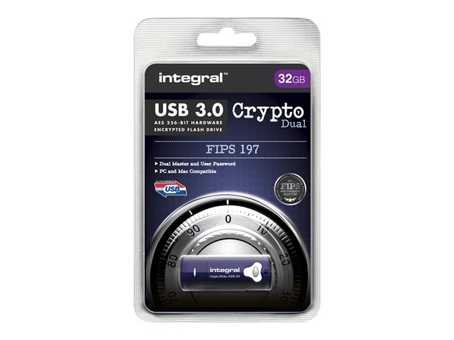 Integral Crypto Dual FIPS 197 - Clé USB - chiffré - 32 Go - USB 3.0 INFD32GCRYDL3.0197