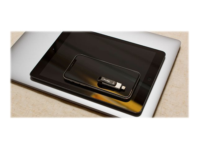 Besoin de plus d'espace sur votre iPhone? Le lecteur iXpand Flash Drive Go est une solution simple d'utilisation qui vous permet de libérer de la mémoire. Conservez vos souvenirs en branchant simplement le lecteur afin de sauvegarder automatiquement vos photos, vidéos et contacts. Une fois que vos fichiers se trouvent sur le lecteur iXpand, vous pouvez utiliser la connexion haute vitesse USB 3.0 pour les transférer rapidement sur votre ordinateur. Il est également possible de protéger vos données par mot de passe sur plusieurs types d'appareils pour éviter tout accès non désiré. De plus, le système pivotant à double usage protège les connecteurs et comprend une attache pour porte-clés pour l'emporter partout avec vous.