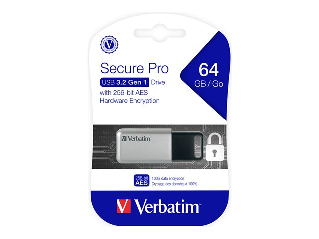 Verbatim Store 'n' Go Secure Pro - Clé USB - chiffré - 64 Go - USB 3.0