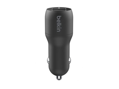 Belkin BOOST CHARGE Double chargeur - Adaptateur d'alimentation pour voiture - 24 Watt - 4.8 A - 2 connecteurs de sortie (USB) - sur le câble : USB-C - noir