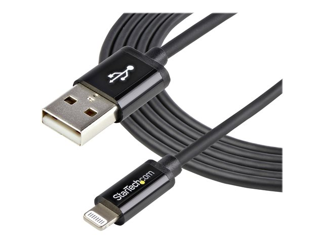 StarTech.com Câble Apple® Lightning vers USB pour iPhone, iPod, iPad 2 m Noir - Câble iPhone 5 - Chargeur Synchronisation Lightning - 2m - Câble Lightning - Lightning mâle pour USB mâle - 2 m - double blindage - noir - pour P/N: ST4200MINI2, ST4200MINIC