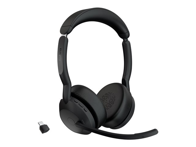 Jabra Evolve2 55 UC Stereo - Micro-casque - sur-oreille - Bluetooth - sans fil - Suppresseur de bruit actif - USB-C - noir - certifié Zoom, Cisco Webex Certified, Certifié Alcatel-Lucent, Certifié Avaya, Certifié Unify, Certifié MFi, Certifié Google Meet, Certifié Amazon Chime