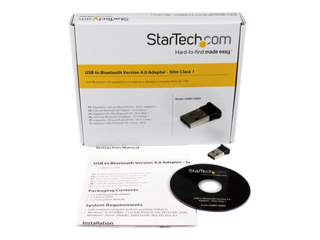 StarTech.com Mini Adaptateur USB Bluetooth 4.0 - Mini Dongle Sans Fil EDR Classe 1 50m - Clé USB Bluetooth version 4.0 Classe I - 50 m - Adaptateur réseau - USB - Bluetooth 4.0 - Classe 1 - noir USBBT1EDR4