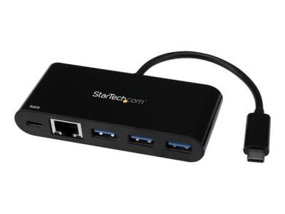 StarTech.com 3 Port USB-C Hub with Gigabit Ethernet & 60W Power Delivery Passthrough Laptop Charging, USB-C to 3x USB-A (USB 3.0 SuperSpeed 5Gbps), USB 3.1/USB 3.2 Gen 1 Type-C Adapter Hub - Windows/macOS/Linux (HB30C3AGEPD) - Concentrateur (hub) - 3 x SuperSpeed USB 3.0 + 1 x 10/100/1000 - de bureau HB30C3AGEPD