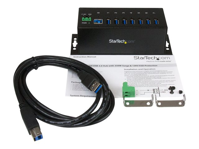 StarTech.com Hub USB 3.0 industriel à 7 ports - Concentrateur USB 3.0 avec protection contre ESD (DES) - Concentrateur (hub) - 7 x SuperSpeed USB 3.0 - Montage sur rail DIN, fixation murale - Tension CC - pour P/N: ITB20D3250, USB312SAT3CB, USB315CB2M, USBLT1MWS, USBLT2MBR, USBLTM1MBK, USBLTM1MWH