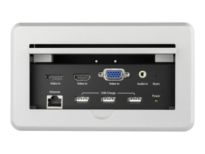 Ce boîtier de connectivitè pour table de confèrence pour installations A/V se pose sur votre table ou pupitre pour fournir une connectivitè A/V, de gestion de rèseau et de charge USB dans votre salle de confèrence, amphithèâtre ou salle de classe. Le boîtier facilite la connexion HDMI, DisplayPort et VGA des ordinateurs portables au grand ècran HDMI de votre salle, et fournit une connectivitè LAN et USB pour charger des pèriphèriques USB. Il permet ègalement une certaine gestion des câbles de salle de confèrence en dissimulant les câbles de connectivitè dans la table.