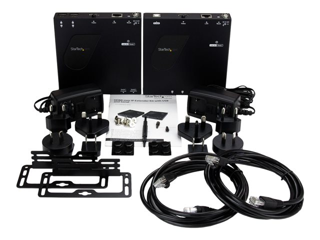 Ce kit HDMI sur IP permet de prolonger un signal HDMI sur votre réseau, ainsi que quatre connexions pour périphériques USB. Vous pouvez ajouter des récepteurs (vendus séparément) pour distribuer les signaux HDMI et USB vers plusieurs emplacements et associer vos écrans à distance pour créer un mur vidéo tout en utilisant la connexion USB pour étendre un écran tactile destiné à une présentation d''affichage numérique interactif.