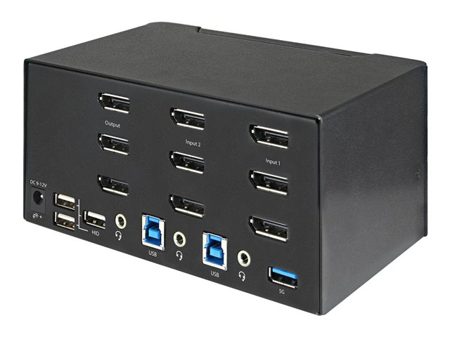 StarTech.com Commutateur KVM DisplayPort 2 Ports pour 3 Moniteurs - 4K 60Hz UHD HDR - KVM de Bureau DP 1.2 avec Hub USB 3.0 2 Ports (5Gbps) et 4 Ports USB 2.0 HID, audio - TAA (SV231TDPU34K) - Commutateur écran-clavier-souris/audio - 2 x KVM / audio - de bureau - Conformité TAA
