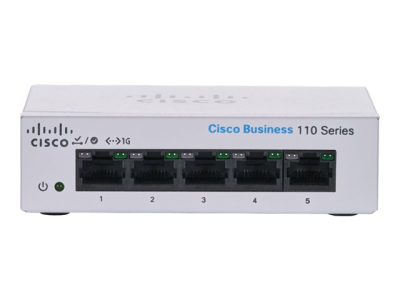 Cisco Business 110 Series 110-5T-D - Commutateur - non géré - 5 x 10/100/1000 - de bureau, Montable sur rack, fixation murale - Tension CC CBS110-5T-D-EU